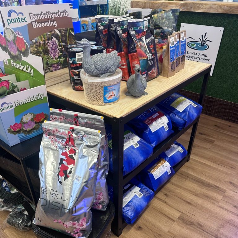 Vor Ort erwartet Sie ein umfangreiches Sortiment rund um den Gartenteich, von